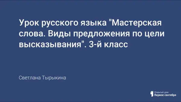 Урок русского языка в 3-м классе по программе «Планета знаний». Цель урока – повторить виды предложений по цели высказывания. В ходе урока отрабатываются навыки «чтения» знаков в конце предложений и постановки знаков препинания самостоятельно.