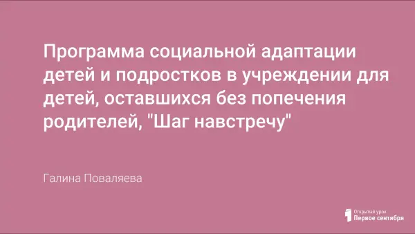 Программа "Шаг навстречу" максимально снижает тревожность несовершеннолетних, поступающих в учреждение для детей, оставшихся без попечения родителей, облегчает социальную адаптацию в новых условиях. Первейшая задача психолога и педагогов учреждения − оказание поддержки в освоении новой жизни.