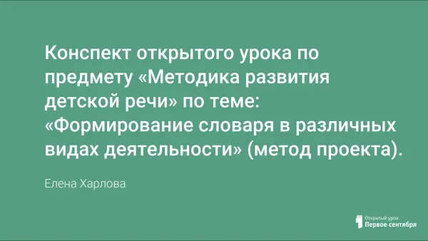 Конспект открытого урока по предмету «Методика развития детской речи», способствующего формированию самостоятельности и креативности студентов в процессе закрепления знаний по разделу «Обогащение словаря», развитию коммуникативных способностей, методического мышления через элементы проектного обучения.