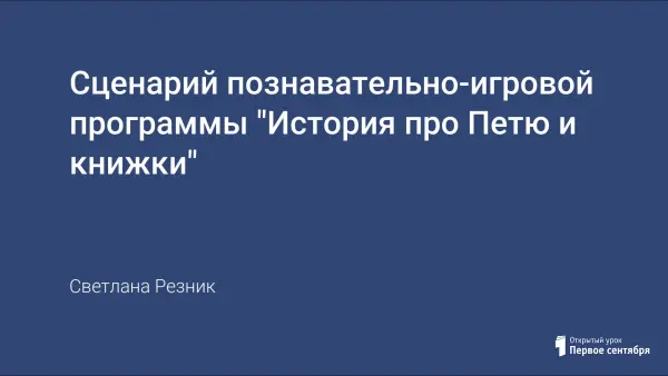 Сценарий познавательно-игровой программы "История про Петю и книжки"