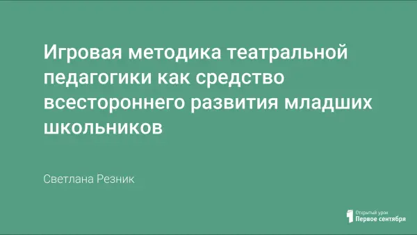 Игровая методика театральной педагогики как средство всестороннего развития младших школьников