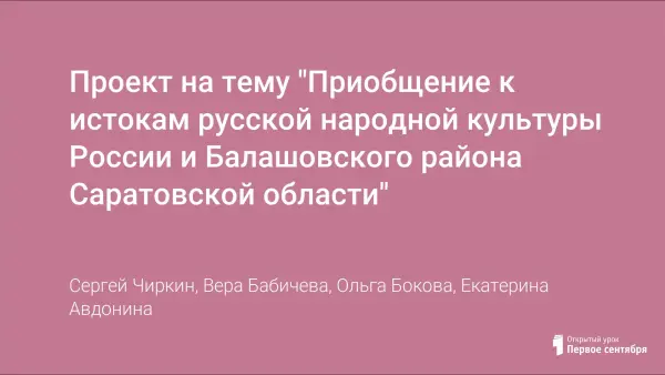 Проект основной целью имеет формирование познавательного и деятельностного интереса к традициям и культуре русского народа. Проектная деятельность предполагает объединение нескольких направлений работы в течение учебного года в одно. Проект поможет обогатить эмоциональную, нравственную и познавательную сферы личности обучающихся; будет способствовать заинтересованному отношению родителей к народным традициям; обогатит семейную жизнь народными традициями, их красивым празднованием.