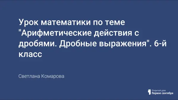 Урок первичного предъявления новых знаний по математике (Авторы учебника: Н.Я. Виленкин, В.И. Жохов, и др., 6-й класс). Цель урока: ввести понятие дробного выражения, знаменателя и числителя дробного выражения. На уроке формируются устные и письменные вычислительные навыки, повторяется теория по теме «Умножение и деление дробей»; систематизируются и обобщаются знания учащихся по теме “Все действия с обыкновенными дробями” (правила сложения, вычитания, умножения, деления; умения).