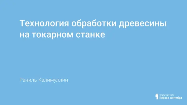 Целью урока: знакомство учащихся с технологией точения древесины на токарном станке СТД-120; формирование знаний в области токарной обработки древесины. Рассказ сопровождается презентацией и практическим показом способов и приемов подготовки к точению и самого процесса точения.