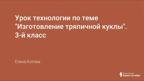 В рамках урока рассматривается история народной тряпичной игрушки. Учащиеся знакомятся с обрядами и традициями русского народа, связанными с изготовлением кукол. Объяснение материала сопровождается показом компьютерной презентации с примерами. Урок развивает творческое отношение к выполняемой работе, пробуждает интерес у учащихся к народному творчеству.