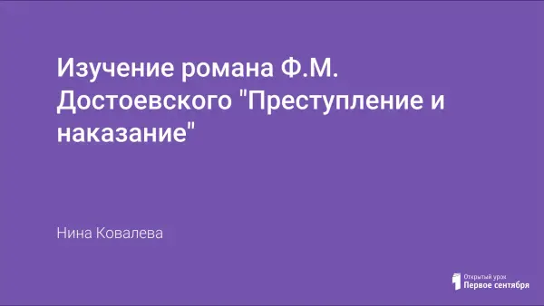 Сегодня важно обратиться к ценностному потенциалу классической литературы и с помощью великих гуманистов-мыслителей дать ориентиры новому поколению читателей, силой художественного слова очищать и облагораживать человека, формировать его сознание. Особое значение имеет роман Ф. М. Достоевского «Преступление и наказание». Статья знакомит с активными формами и методами при изучении романа: беседа, лекция, концерт, опрос, презентация, сочинение-миниатюра, семинар и др.