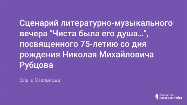 В статье представлен сценарий литературно-музыкального вечера, посвященного 75-летию со дня рождения Н.М. Рубцова. Сценарий поможет познакомить учащихся с творчеством поэта и его биографией.