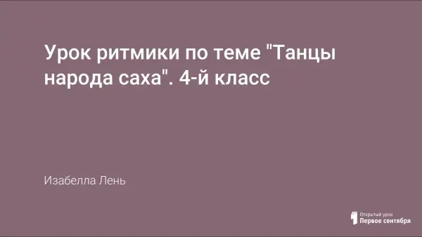 Урок является заключительным в изучении темы «Танцы народа саха» учебной программы по курсу «Ритмика» в 4-м классе. В рамках регионального компонента курса изучаются такие обрядовые танцы, как Осуохай и «Узоры», где ученики знакомятся с народной танцевальной культурой якутов. Знания и умения, полученные на этих уроках, можно использовать при проведении занятий, праздников, посвященных якутской национальной культуре.