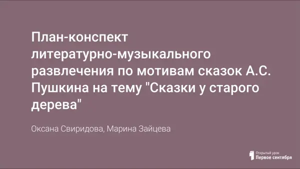 План-конспект литературно-музыкального развлечения по мотивам сказок А.С. Пушкина на тему "Сказки у старого дерева"