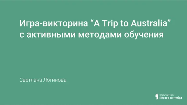 Урок завершает изучение темы «Австралия», проводится в форме игры-викторины с целью систематизации и обобщения знаний учащихся по теме. На уроке применяются активные методы обучения, которые строятся на практической направленности, игровом действе, интерактивности, групповой форме работы, деятельностном подходе к обучению, движении и рефлексии.