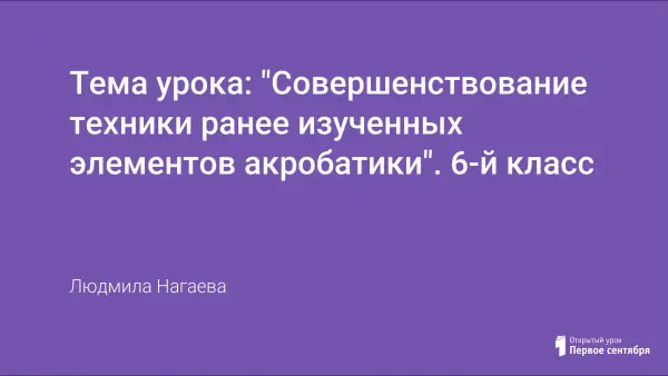 Открытый урок из раздела программы "Гимнастика" совершенствует технику ранее изученных элементов акробатики. Акробатические упражнения и прыжки развивают скоростную силу, гибкость, ловкость, прыгучесть, воспитывают решительность, смелость и настойчивость. Выполнение упражнений на высоком уровне показывает правильную и последовательную методику обучения учащихся.