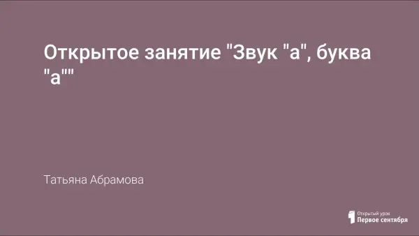 Цель работы: профилактика нарушений чтения и письма у детей в предшкольный период. Вводится понятие «гласный» звук и новое обозначение гласного звука – красный цвет. Даны игры как лексического содержания, так и подвижные, с мячом. На занятии детей впервые знакомят с буквой "а". Дети прописывают букву в воздухе и пальчиком на тактильных карточках – буквах, изготовленных из бархатной или наждачной бумаги. Занятие может использоваться в работе специалистов, готовящих детей к обучению в школе.