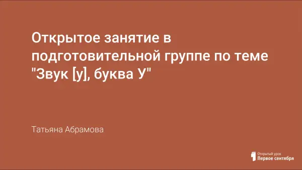 Цель работы: профилактика нарушений чтения и письма у детей в дошкольный период. В занятии впервые вводится понятие «гласный» звук. Вводится новое обозначение гласного звука – красный цвет. Даны игры как лексического содержания, так и подвижные игры с мячом. На занятии детей впервые знакомят с буквой «У». Представленное занятие может быть использовано в работе специалистов, готовящих детей к обучению в школе.
