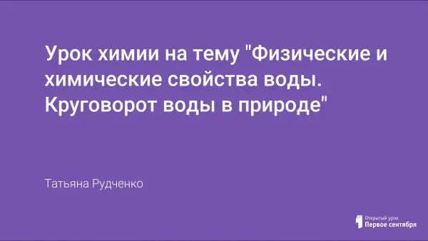 Цель урока: изучить свойства воды, круговорот воды в природе; познакомить учащихся со свойствами воды как химического вещества; формировать представления о важнейших классах неорганических соединений: кислотах и основаниях; учить учащихся записывать уравнения реакций.