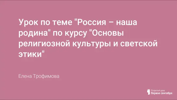 Урок по курсу «Основы религиозной культуры и светской этики» проходит как урок-встреча. В ходе урока ученики знакомятся с представлениями о родине с помощью таких видов деятельности, как работа с картой, беседа, устный рассказ на заданную тему, работа с иллюстративным материалом, самостоятельная работа с источниками информации, работа в группах, творческие задания, подготовка творческой беседы с членами семьи.