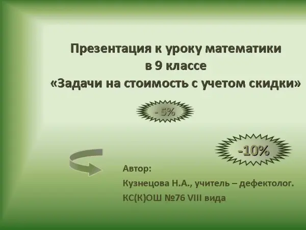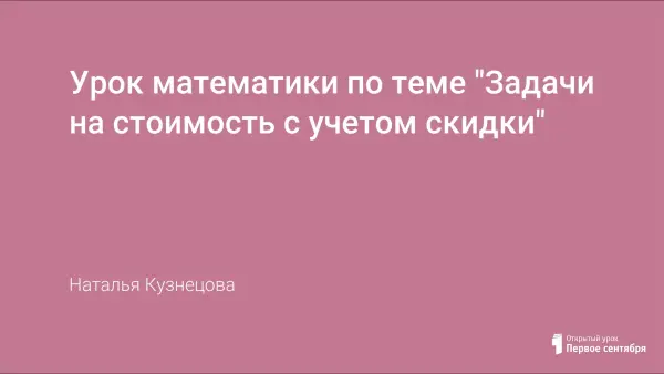Цель урока: познакомить учащихся с новым видом задач на определение цены товара с учетом скидки.