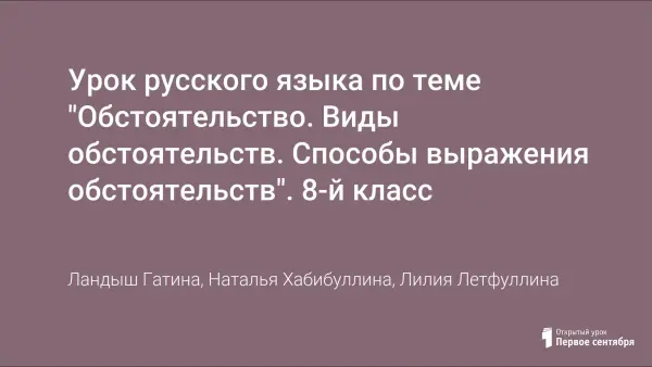 Урок русского языка по теме "Обстоятельство. Виды обстоятельств. Способы выражения обстоятельств". 8-й класс