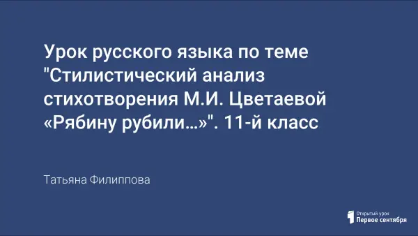 Урок русского языка по теме "Стилистический анализ стихотворения М.И. Цветаевой «Рябину рубили…»". 11-й класс