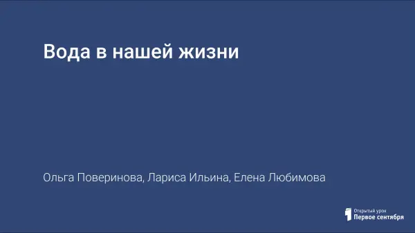 Цель занятия: определить ценность воды в природе и в жизни человека.