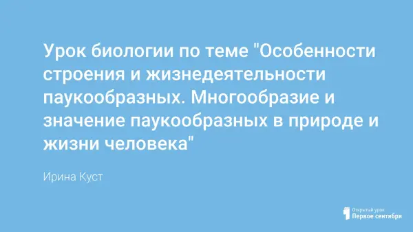 Цель урока: повторить, закрепить и расширить знания о признаках класса паукообразных, раскрыть многообразие паукообразных, их роль в природе и жизни человека.
