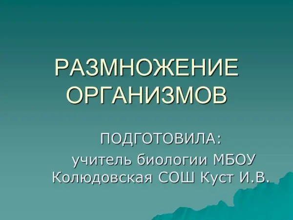 Урок обобщает, систематизирует информацию о процессах размножения организмов. На уроке используются сообщения учащихся, которые они готовят самостоятельно с дополнительными средствами информации. Развиваются способности учащихся довести нужную информацию до своих одноклассников.