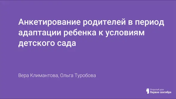 Анкетирование родителей в период адаптации ребенка к условиям детского сада