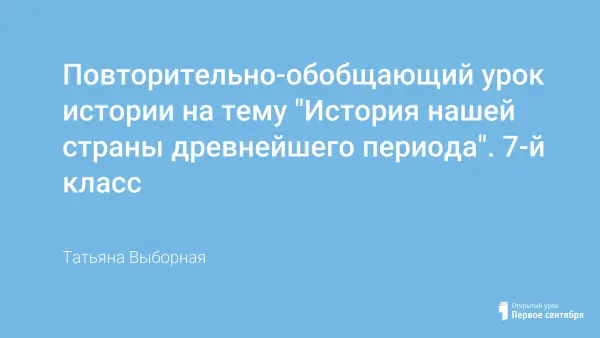 Публикация представлена в виде повторительно-обощающего урока на тему "История нашей страны древнейшего периода". Цель: обобщить и закрепить пройденный материал по разделу: "История нашей страны древнейшего периода".