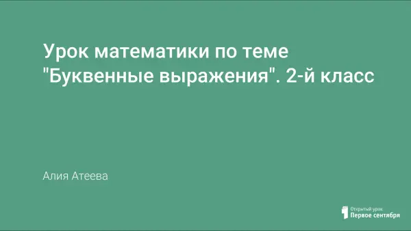 Урок изучения нового материала, на котором создаются условия для усвоения учащимися первоначальных представлений о буквенных выражениях. На уроке дается первичное представление о буквенных выражениях; ведется подготовительная работа к изучению темы «Уравнение»; развиваются вычислительные навыки; продолжена работа над задачами изученных видов. Методы и формы обучения: частично-поисковый.
