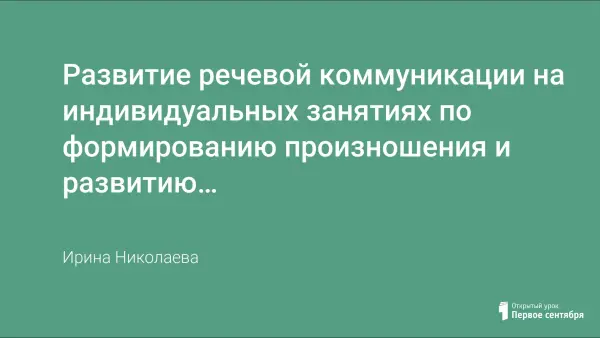 Развитие речевой коммуникации на индивидуальных занятиях по формированию произношения и развитию слухового восприятия и умение использовать ее в актуальных для ребенка жизненных ситуациях