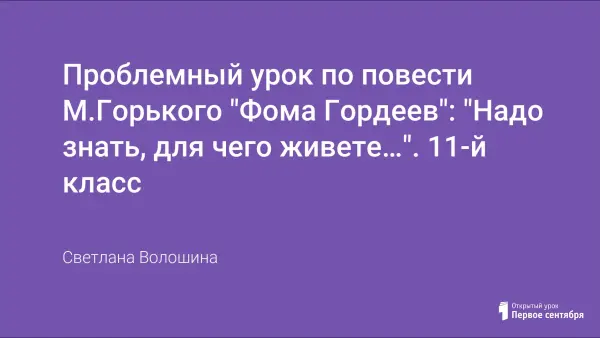 Проблемный урок для учащихся 11-го класса по повести М.Горького «Фома Гордеев». Основная цель урока: нравственные поиски смысла жизни главным героем повести Горького «Фома Гордеев». В ходе урока ученики делятся на группы и проводят свои исследования. Урок развивает интерес к исследовательской работе, учит сравнивать, самостоятельно делать выводы, обобщения.