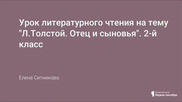 В данной статье представлен мультимедийный урок литературного чтения для учащихся 2-х классов по теме “Л.Н.Толстой, «Отец и сыновья»”. На уроке используются элементы формирующего оценивания, различные формы познавательной деятельности, высказываются суждения о значении нравственных качеств. Учащиеся планируют учебное сотрудничество, выделяют существенную информацию в тексте, осуществляют самооценку собственной учебной деятельности. Использования ИКТ на уроке позволяет сделать урок информационно насыщенным, интересным.