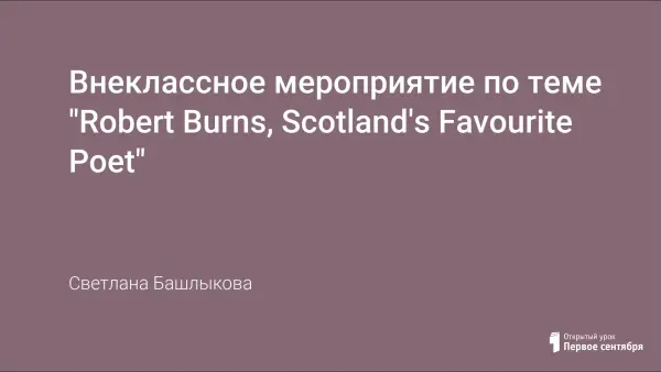 Более двухсот лет назад Шотландия подарила миру великого поэта-барда Роберта Бернса. Популярность его велика и сегодня. Стихи и песни Роберта Бернса в переводе Самуила Яковлевича Маршака настолько понятны и мелодичны, что, услышав их один раз, вы запомните их навсегда. Внеклассное мероприятие проведено в форме литературной гостиной. Подготовка к мероприятию вызвала живой интерес у учащихся 11-х классов.