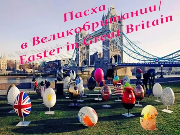 Цель мероприятия: просвещение дошкольников в области культуры и традиций страны изучаемого языка, формирование актуальной сегодня социокультурной компетенции, воспитание интереса и уважения к иноязычной культуре. Работа рассказывает об одном из самых любимых англичанами празднике ‒ Пасхе.