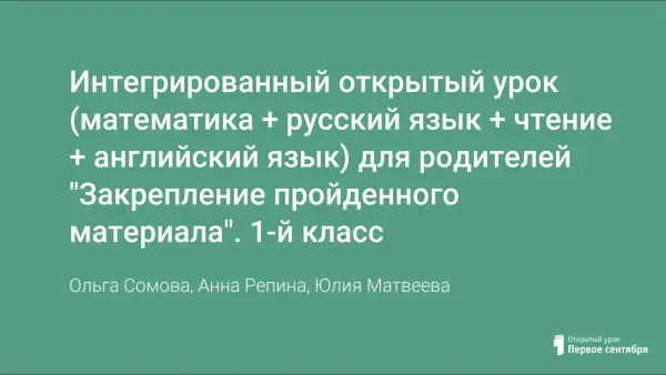 Интегрированный открытый урок (математика + русский язык + чтение + английский язык) для родителей "Закрепление пройденного материала". 1-й класс