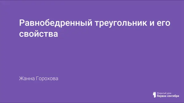 Цели и задачи урока: ввести определение равнобедренного треугольника; познакомиться со свойствами равнобедренного треугольника, закрепить знание свойств равнобедренного треугольника при решении задач; развивать логическое мышление учащихся, развивать познавательный интерес к предмету.