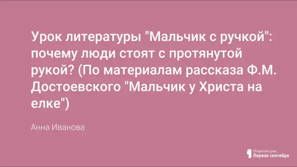 На уроке создается ситуация, в которой дети сами выбирают личность писателя для изучения (из предложенных). В ходе урока они знакомятся с основными этапами жизни Ф.М. Достоевского, читают и анализируют отрывок из его произведения «Мальчик у Христа на елке», ведут этическую беседу, стимулом к которой становится художественный текст. Все это подчинено единой идее: учить ребенка не пасовать перед трудностями, преодолевать их.