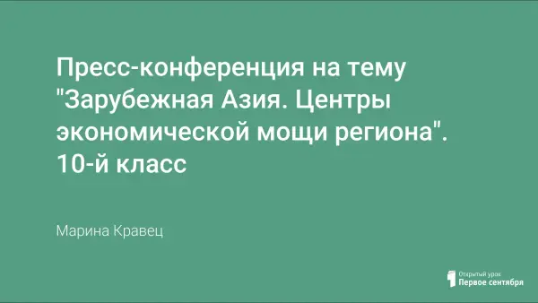 Данная разработка является завершающим уроком в ходе изучения региона Зарубежная Азия. Подготовка рабочих групп начинается примерно за месяц до проведения итогового урока, что дает возможность всего за 45 минут урочного времени охватить огромный материал целого раздела.