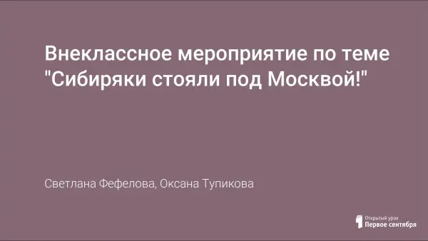 Внеклассное мероприятие по теме "Сибиряки стояли под Москвой!"