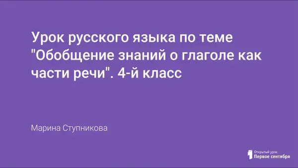 Урок русского языка по теме "Обобщение знаний о глаголе как части речи". 4-й класс