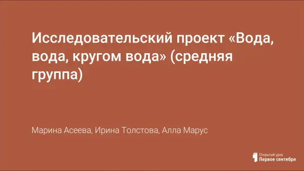 Исследовательский проект «Вода, вода, кругом вода» (средняя группа)
