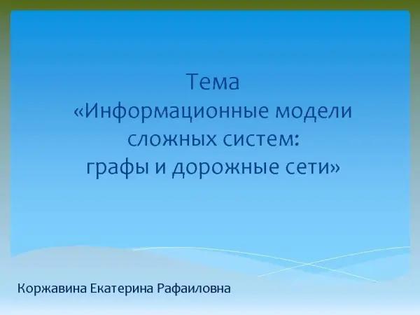Изучение темы «Информационные модели сложных систем: таблицы, графы, дорожные сети, иерархические структуры»