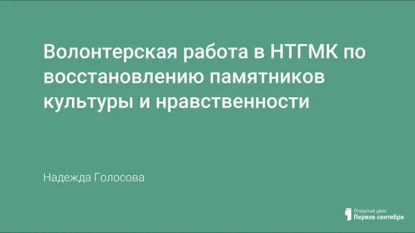 Описание аспектов волонтерской работы в Нижнетагильском горно-металлургическом колледже по восстановлению памятников культуры и нравственности. Работа православной направленности.