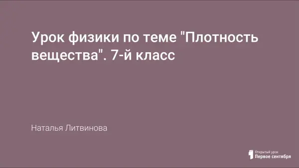 В работе представлен конспект урока по физике в 7-м классе по теме "Плотность вещества" по УМК А.В. Пёрышкин "Физика 7", базовый учебник. Дидактическая цель: создать условия для актуализации познавательной деятельности учащихся с помощью технологий проблемного обучения и исследовательской деятельности.