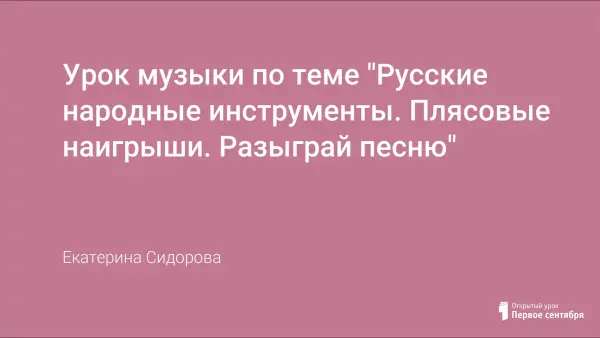 Урок помогает общаться и взаимодействовать в процессе ансамблевого, коллективного (хорового и инструментального) воплощения различных образов русского фольклора, разыграть народные игровые песни, осуществлять опыты сочинений мелодий, ритмических, пластических и инструментальных импровизаций на тексты народных песенок.