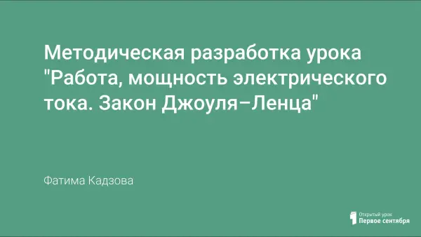 Цели урока: сформировать понятия мощности и работы электрического тока; изучить закон Джоуля–Ленца; повторить единицы измерения работы, мощности, количества теплоты; обучить студентов методам решения задач на расчет количества теплоты, работы и мощности электрического тока.
