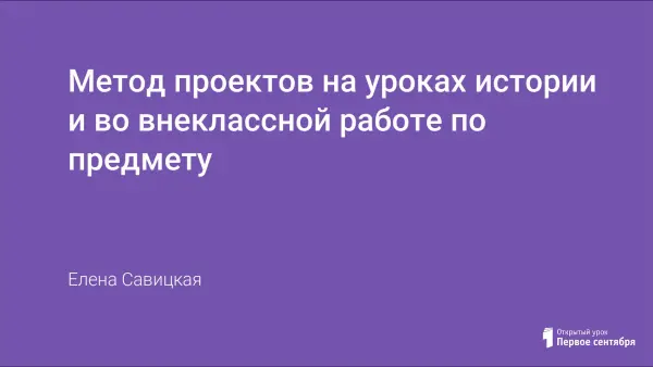 В данной статье представлено обобщение собственного опыта применения метода проектов на уроках истории и во внеурочной деятельности.