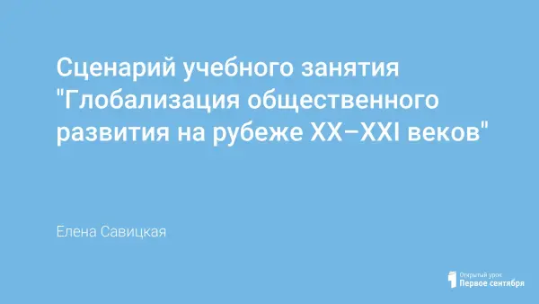 Сценарий учебного занятия по всеобщей истории в 11-м профильном классе разработан с использованием технологии развития критического мышления. Ученики изучают историю вопроса, анализируют содержание документов о глобализации, составляют кластер по документу №1 с учётом знаний, полученных в результате работы над опережающим заданием, и отвечают на вопросы по документу № 2.