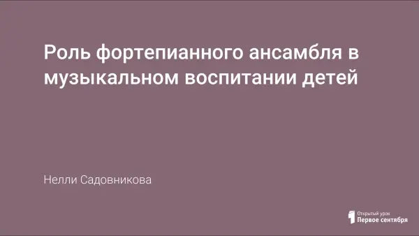 Данная методическая работа адресована преподавателям фортепиано детских музыкальных школ и школ искусств и направлена на изложение методических рекомендаций по совершенствованию учебно-воспитательной работы и формированию у учащихся художественной индивидуальности в классе фортепианного ансамбля.