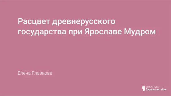 Урок знакомит шестиклассников с эпохой правления Ярослава Мудрого, формирует представление о его внешней и внутренней политике, социальной структуре общества, раннефеодальных отношениях на Руси. Презентация, подготовленная учащимися 11-го класса, повышает плотность и наглядность урока.