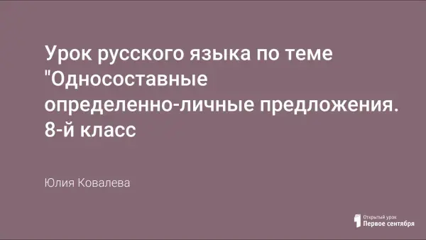 Урок в 8-м классе призван углубить представления учащихся об односоставных предложениях, учить различать двусоставные и односоставные предложения, разграничивать виды односоставных предложений, направлен на формирование понятий об определенно-личном предложении, практических умений и навыков по осознанному применению полученных знаний на практике.